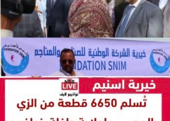 سلمت اليوم الاثنين 12/01/2026 خيرية الشركة الوطنية للصناعة والمناجم اسنيم بمنى ولاية داخلة انواذيبو 6650 قطعة من الزي المدرسي الموحد...